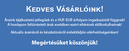 Az árak tájékoztató jellegűek. Megrendelés függvényében alakítjuk ki az egyedi árakat, amely alapján a szállítási költség is meghatározásra kerül.
